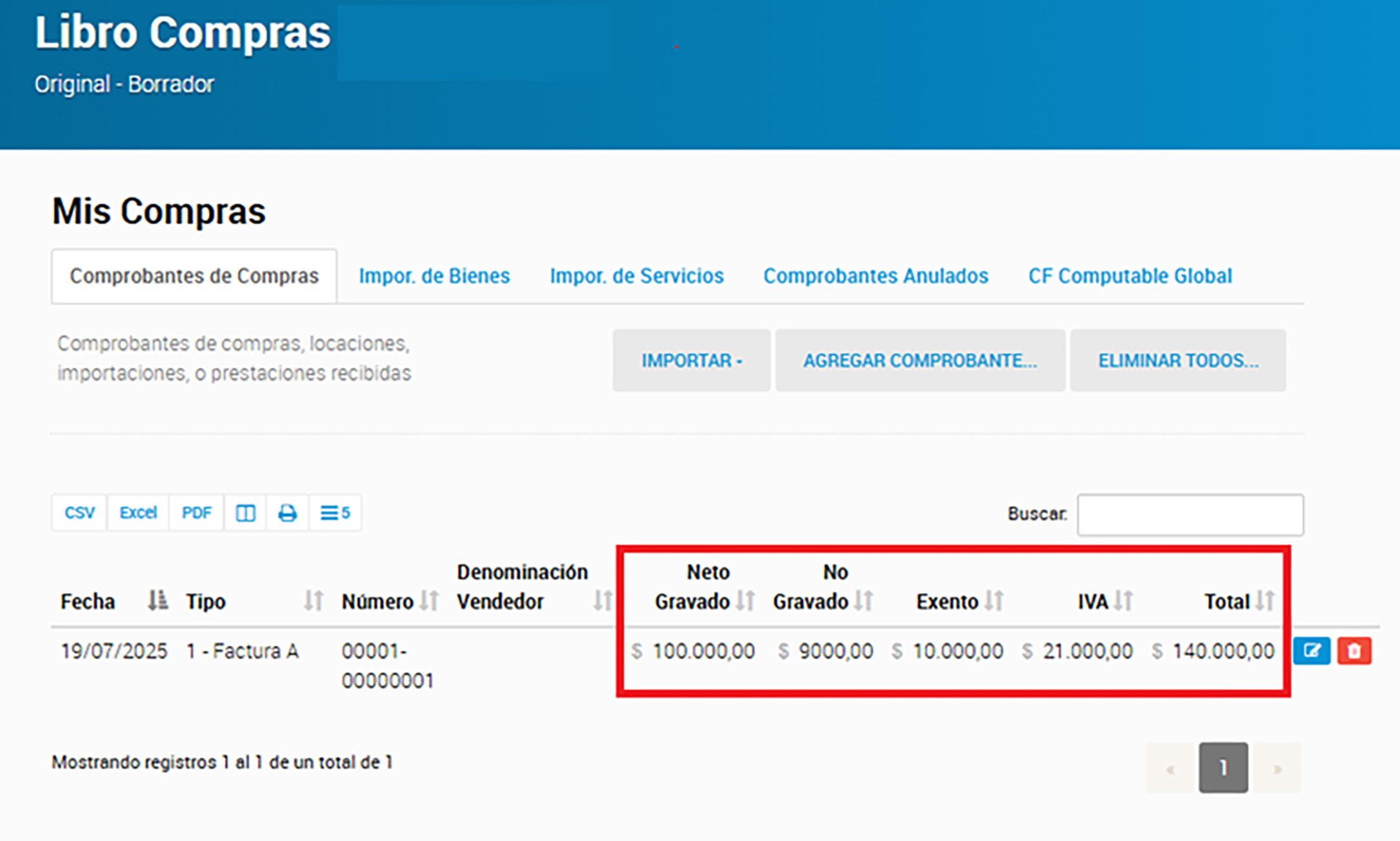 Asimismo, el sistema habilitará una nueva pestaña en el Libro Compras denominada ‘CF Computable Global’ que permitirá discriminar los siguientes conceptos: