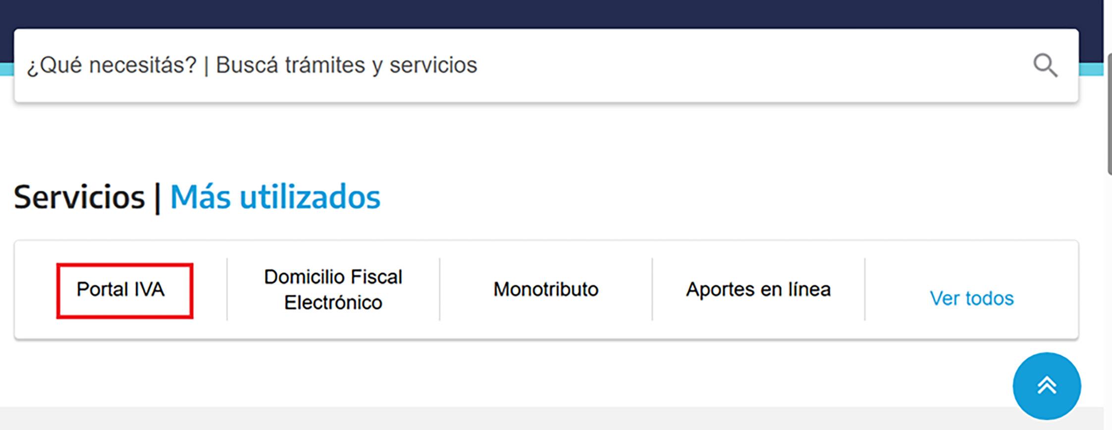 En razón de ello, en la presente guía vamos a exponer el tema según los módulos. No obstante, y más allá del tema de los módulos, el punto de partida es ingresar al Portal IVA con la Clave Única de Identificación Tributaria (CUIT) y la Clave Fiscal del contribuyente como se hace habitualmente. Luego seleccionar “PORTAL IVA” en el buscador de trámites, como se muestra a continuación: