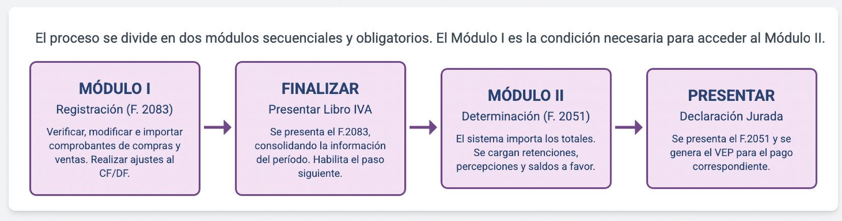 Es necesario seleccionar la opción “Registración y declaración”, donde a continuación aparece el Módulo I - Libro IVA: