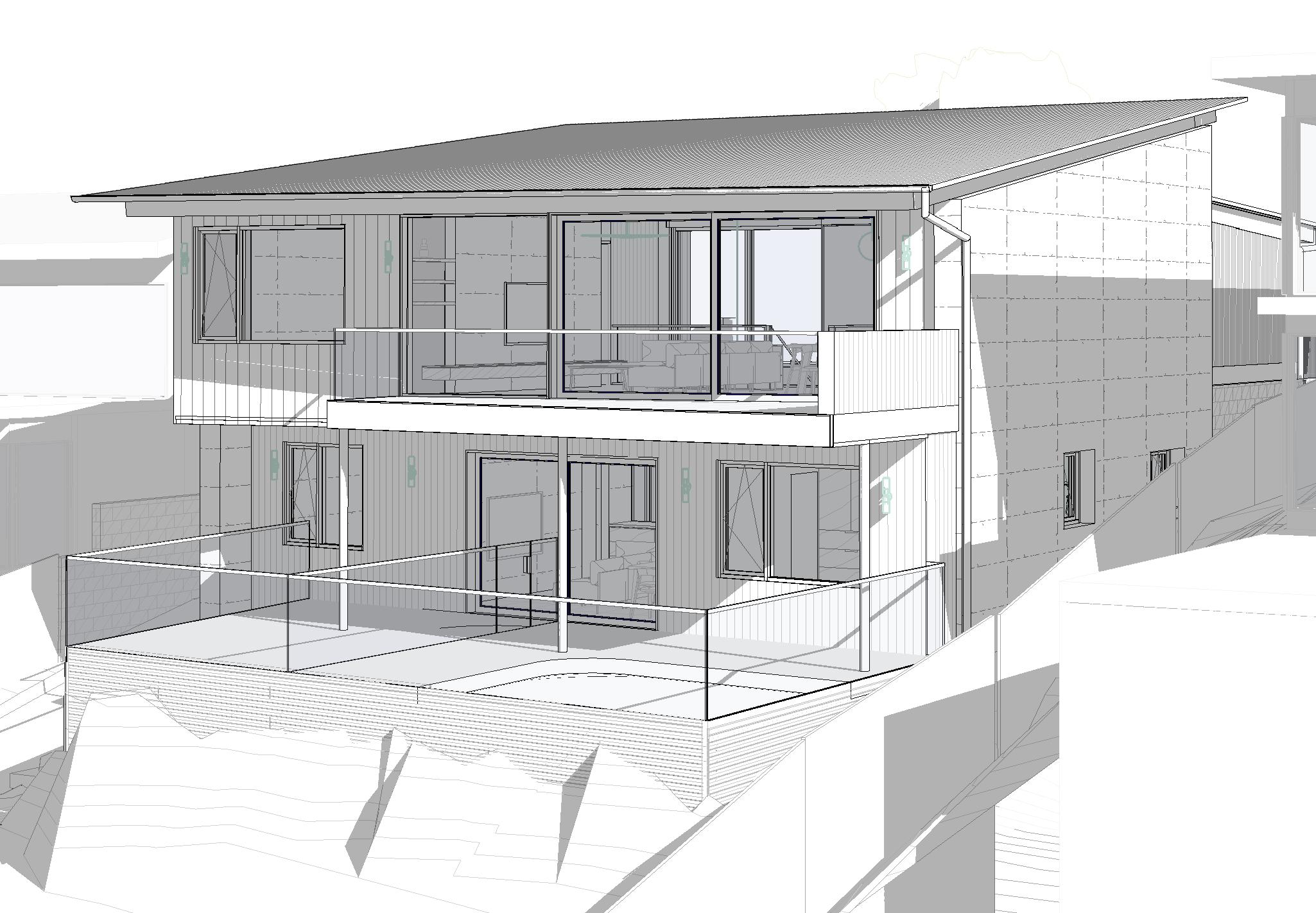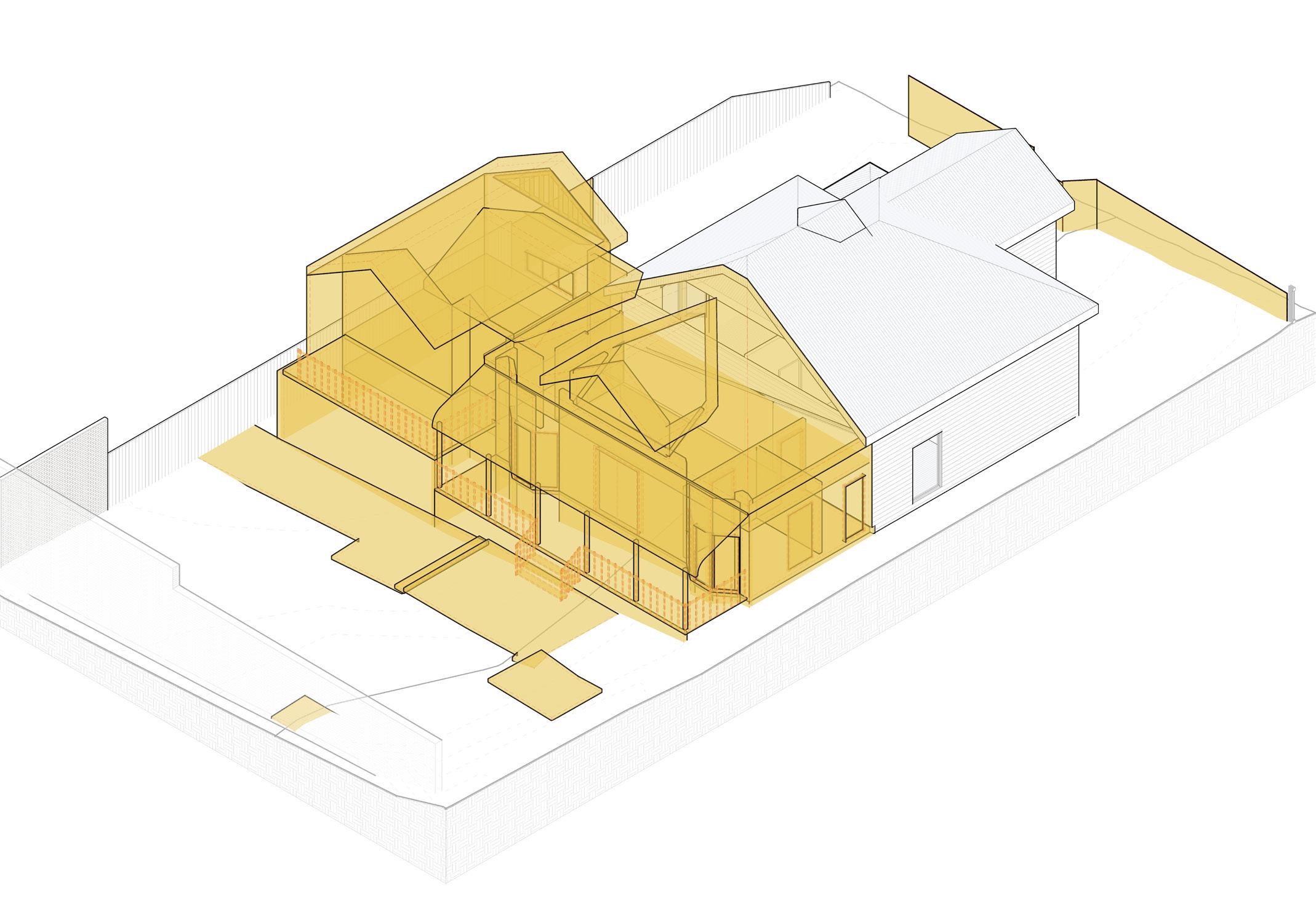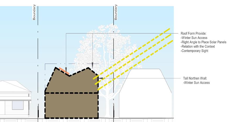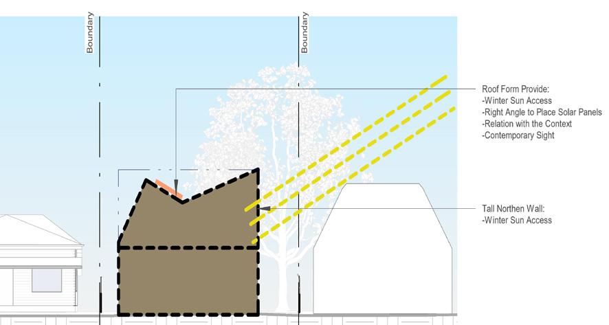 The folded gable form, the location of the upper balco ny or deck and the unstandard brick size on the lower storey made the development and documentation of this project challenging, which result and multiples and complex construction details to comply with the Austral ian Standards and the passive house standards