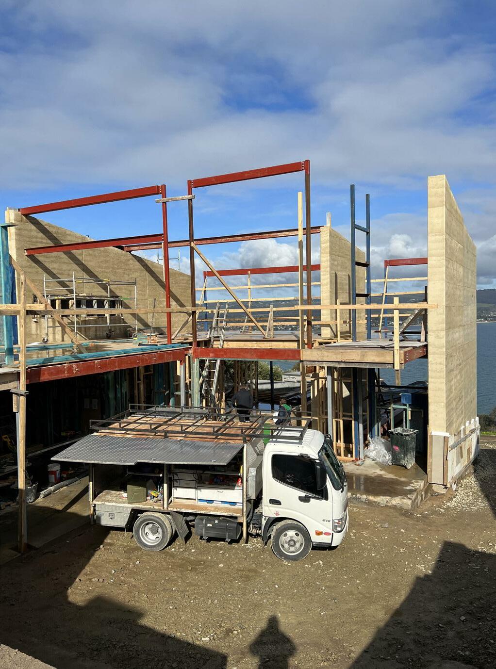 Steel framing Northern Façade Steel framing Northern Façade and Western Rammed earth Wall