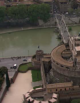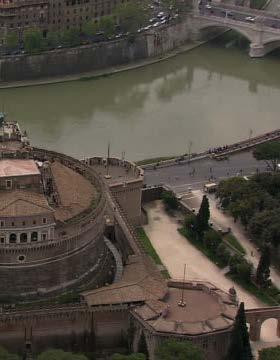 The Castel Sant’ Angelo, also known as the Mausoleum of Hadrian is a castle in Parco Adriano, Rome, Italy. It was designed by the architect Demetriano and built between the years 135 and 139 AD. The Roman architectural style is represented in this structure with the concrete rounded buildings, the innovative use of the arch, and the amphitheatre style design.