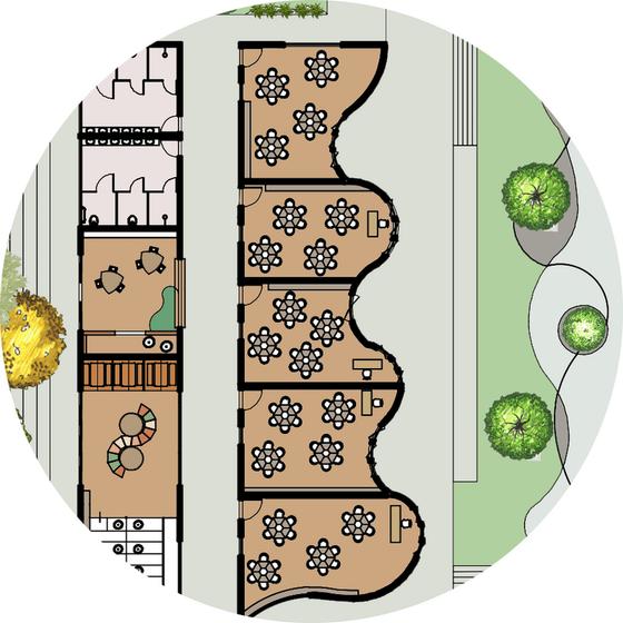 ludicidade. arquitetura sensorial como aliada espaços plurais espaços externos como ambientes de aprendizagem presença de elementos da natureza em diversos espaços da escola diversidade de elementos nos espaços para texturas dimensões elementos brincar socializar aprender explorar