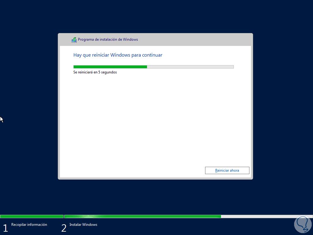 Durante este proceso se concluirá la instalación de Windows Server 2019:
