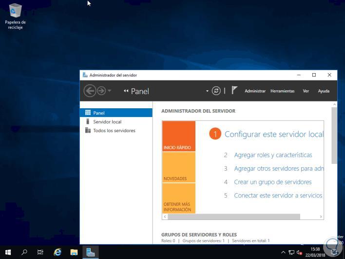 Pulsamos en Finalizar y podremos ver el tradicional acceso a Windows Server: