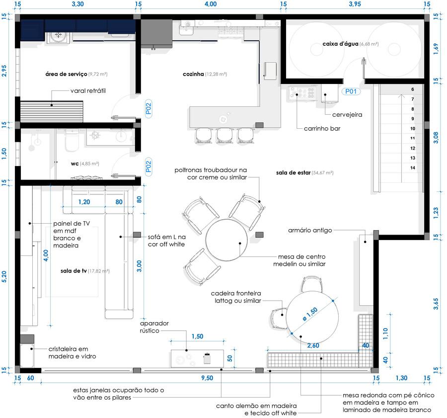 Projeto de reforma do terraço da casa dos clientes Valesca e Dirley, afim de criar uma área gourmet com sala de tv, cozinha e sala de estar integrados, para que o casal possa receber amigos