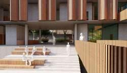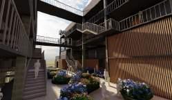 El proyecto se compone de módulos alineados que se conectan mediante una circulación exterior continua.