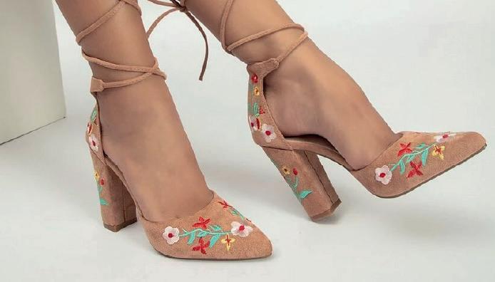 Tacones gruesos con bordado floral con diseño de cordón de pierna SKU: TALLASsx220305192124121135A39 Q440.00 9