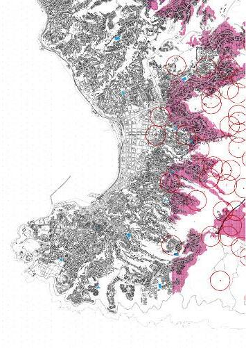 Guiados pelos focos de recorrentes incêndio da parte informal da cidade de Valparaíso-CL, e sua proximidade com os campos de futebol já existentes, também chamados em espanhol como “auditórios”. Esses lugares foram entendidos para além da prática do esporte e pela própria abragência do termo que os confere nome, revelando-se como potenciais espaços para a convivência da comunidade que ali reside, para o lazer e para situações emergenciais como as de incêndio. Nesse sentido, o projeto propõe a sistematização do programa em 2 formas arquitetônicas. Enquanto a primeira, circular, funciona como um espaço plurívoco, com campo poliesportivo e outras ocupação, a forma retangular, quase como a de um pavilhão, funciona como apoio. Essa segunda forma, busca atender aos usuários do auditório com cozinha, refeitório, vestiários, sala para estudos, além de uma pequena brigada de incêndio e estação de reciclagem de lixo (pincipal causa dos incêndios). Em caso de uma situação emergencial, esse espaço também teria seu caráter reconfigurado, de forma a funcionar como um lugar temporário, atendendo à comunidade local.