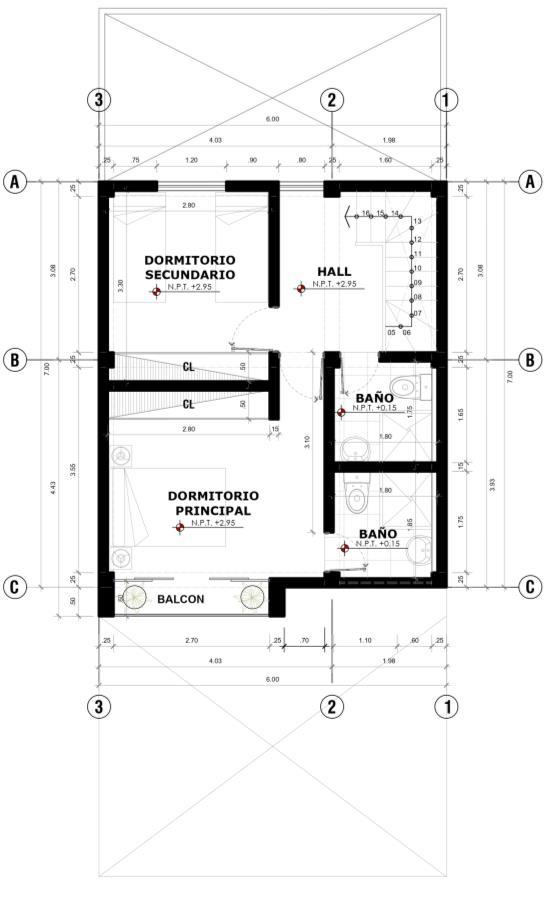 PLANTA ARQUITECTONICA ELEVACION PRINCIPAL CORTE LONGITUDINAL CORTE TRANSVERSAL 1 CORTE TRANSVERSAL 2 PORTAFOLIO- LUIS BALTAZAR 05