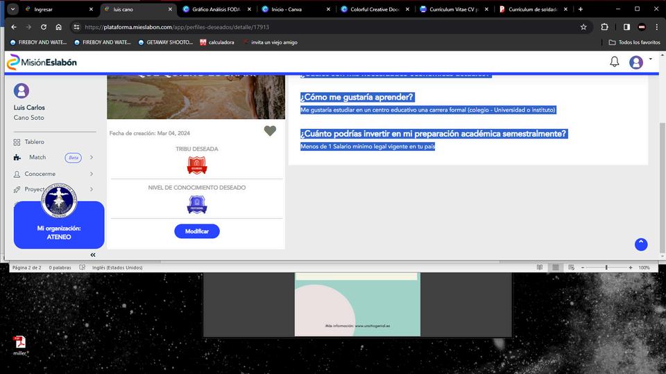 Me gustaría estudiar en un centro educativo una carrera formal (colegio - Universidad o instituto)