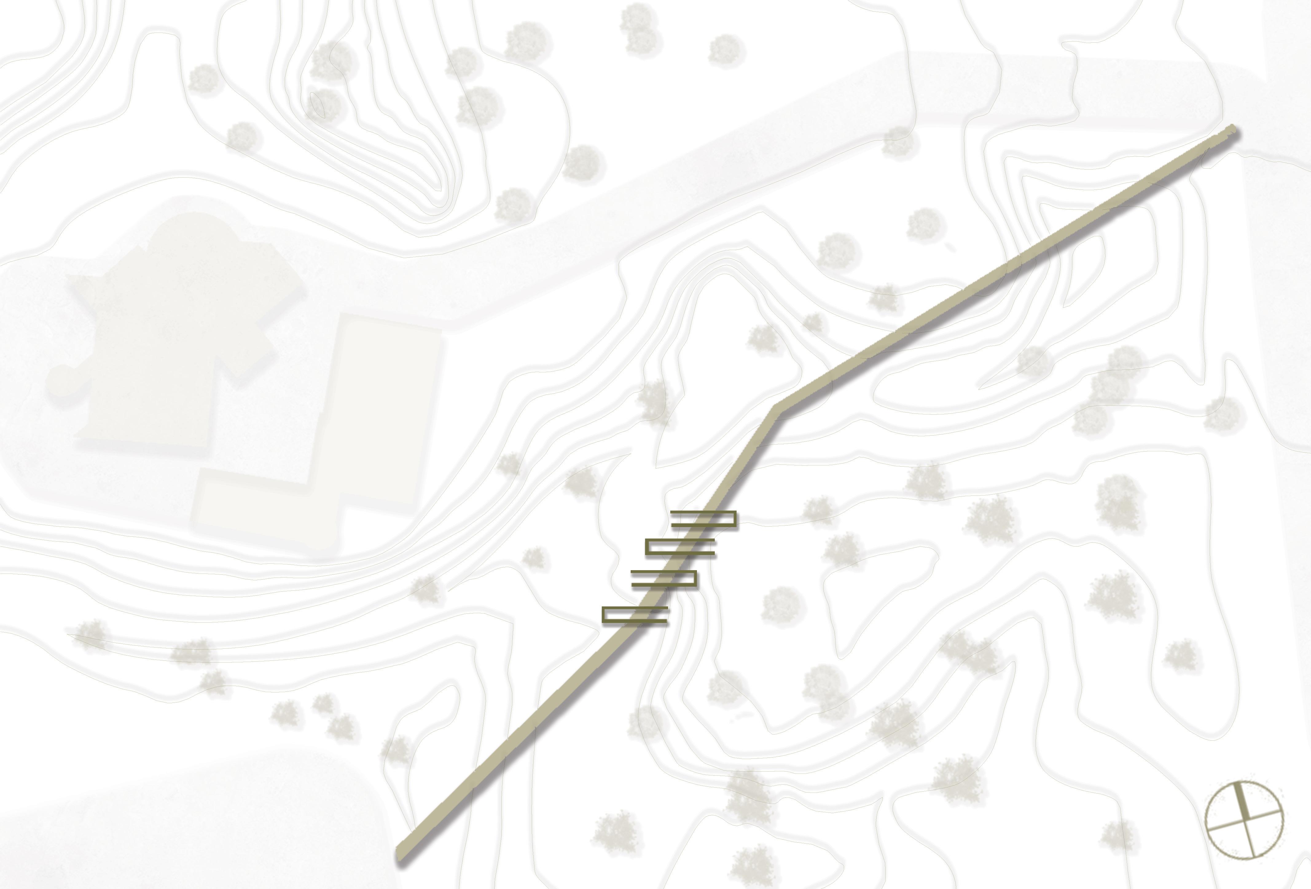 Para esto se generan un espacio conectadopor un puente, de esta forma se intervinie lo menos posible sobre el terreno y generando un hito para el usuario.