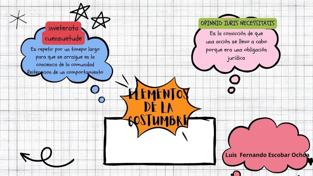 Se menciona la existencia de un elemento material (la reiteración en el comportamiento) y un elemento espiritual (la elevación de ese comportamiento a modelo de conducta, de observancia preceptiva), distinguiéndose la costumbre jurídica de los usos sociales.