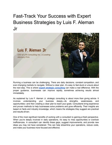 Luis F _ Aleman Jr: Maximize Your Potential with Cutting-Edge Strategic Consulting Techniques!