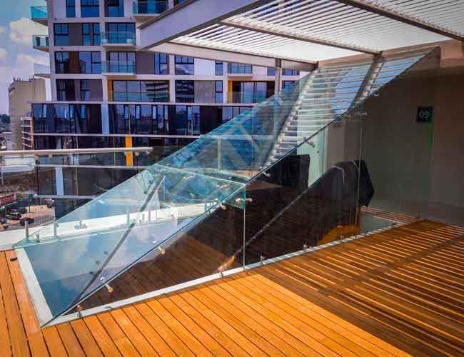 Techos de vidrio claro templado de 10mm. con lámina de seguridad.