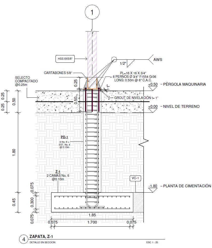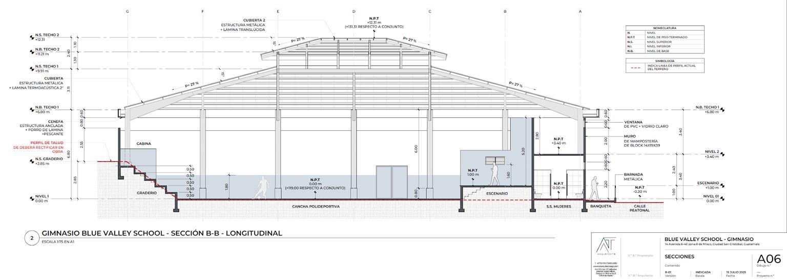 Contenido mínimo Sistema estructural (vigas, columnas), alturas libres, pendientes de cubierta o rampas, rellenos de suelo, ejes, niveles, cotas verticales, mobiliario clave.