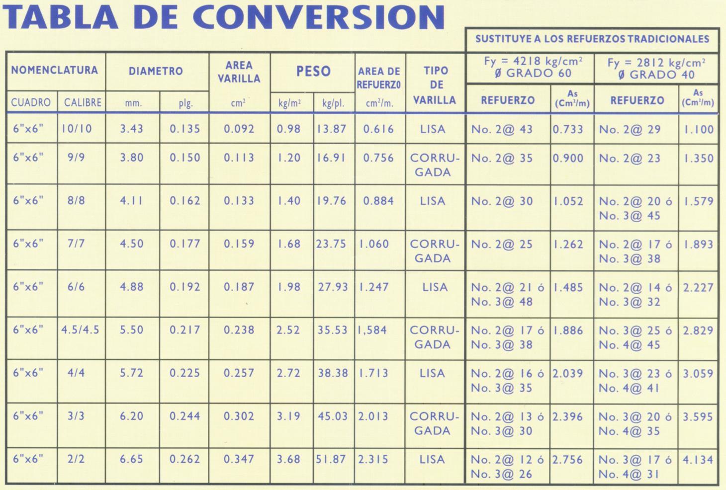 - Barras milimétricas y mallas electrosoldadas: fy > 5000 kg/cm² ASTM A1064.