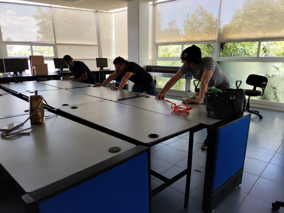 Después de comprobar que las piezas ensamblaban correctamente, se llevó el material ya trabajado al aula donde debía ser instalado; donde fue armado nuevamente.