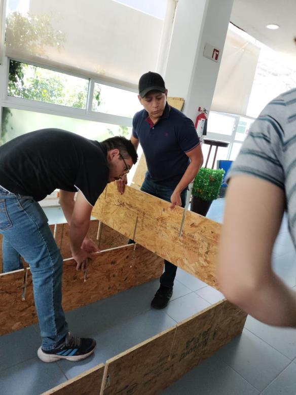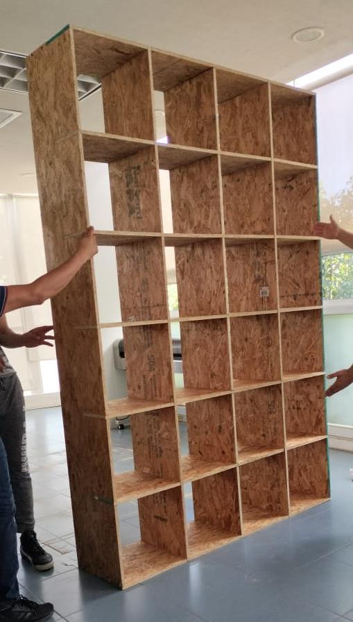 Se desarrollaron varías propuestas de diseño para el muro, después de seleccionar una se compró el material seleccionado, conglomerado OSB.