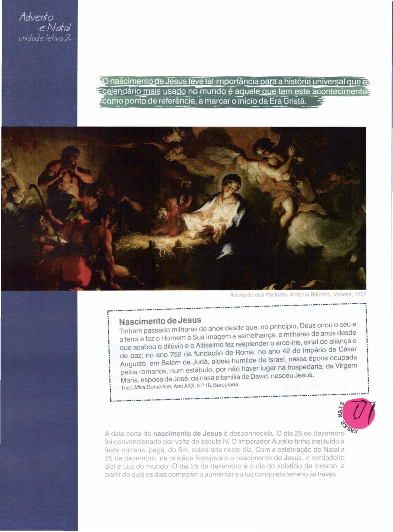 O nascimento de Jesus : a palavra e o amor de Deus que chegam até nós .... ..... ................... 40