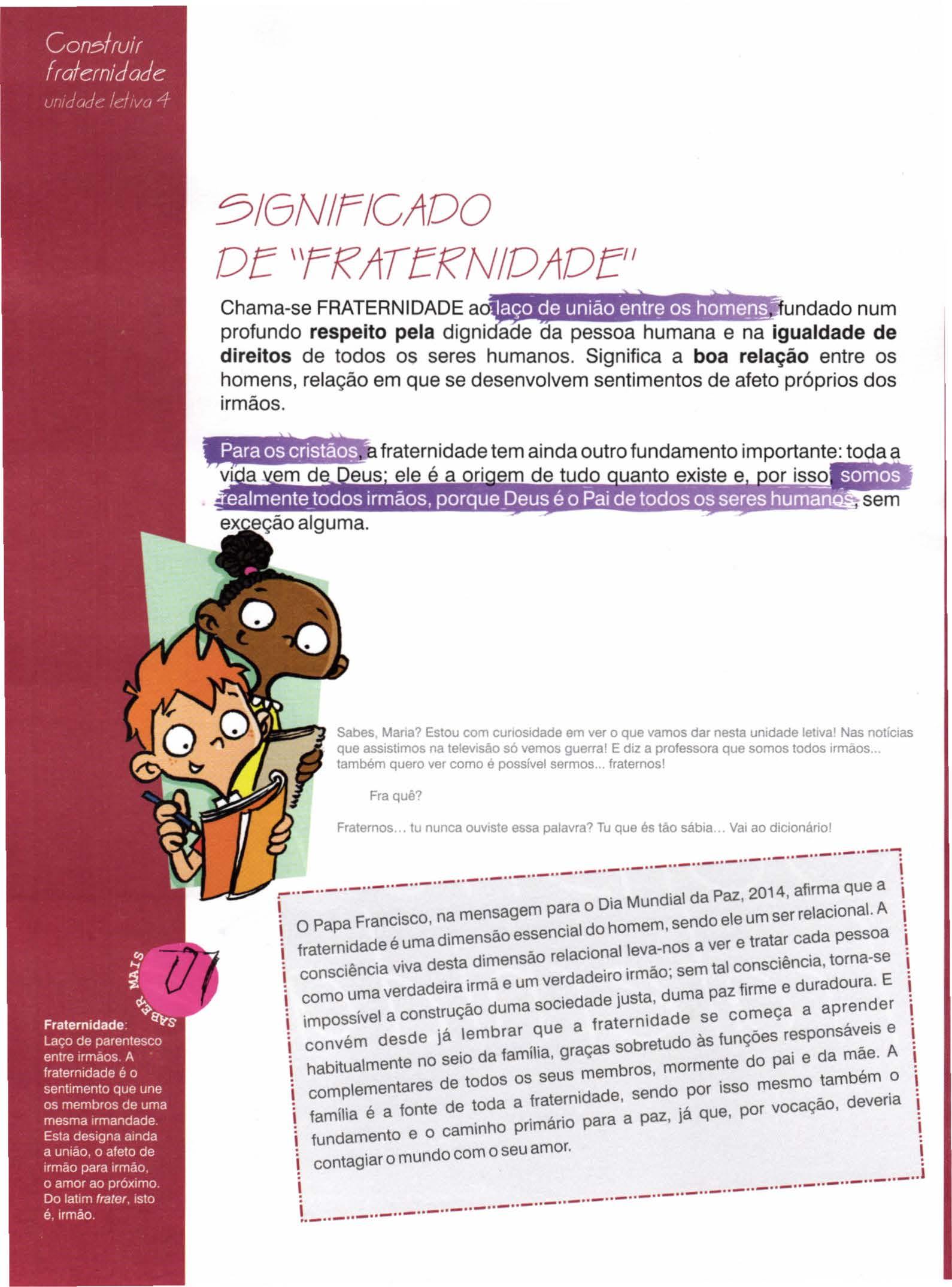 É com grande alegria que vos entregamos os manuais de Educação Moral e Religiosa Católica, que foram preparados para lecionar o novo Programa da disciplina, na sua edição de 2014. O que aqui encontrareis procura ajudar, cada um dos alunos e das alunas que frequentam a disciplina, a «posicionar-se, pessoalmente, frente ao fenómeno religioso e agir com responsabilidade e coerência», tal como a Conferência Episcopal Portuguesa definiu co1no grande finalidade da disciplina*. Para tal, realizou-se um extenso trabalho que pretende, de forma pedagogicamente adequada e cicntifica1ncntc significativa, contribuir con1 seriedade para a educação integral das crianças e dos jovens do nosso País.