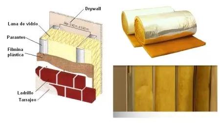 muros interiores con lana de vidrio y drywall