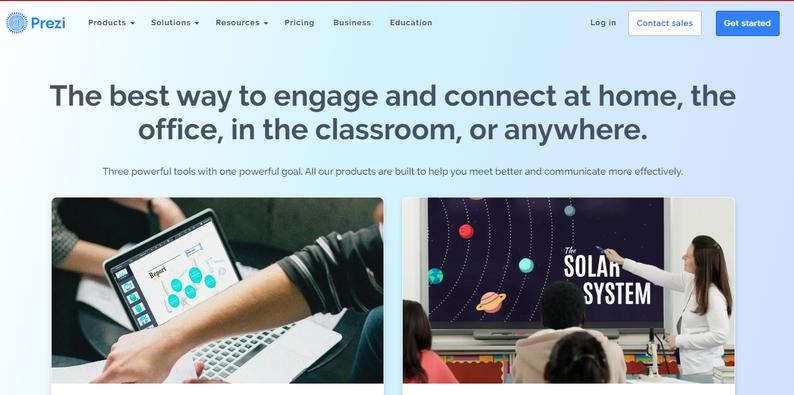 Prezi es una plataforma donde puedes crear presentaciones interactivas, tiene diferentes estilos y plantillas que puedes usar o crearlas desde cro, es intuitiva y facil de usar. La recomiendo para presentaciones escolares.