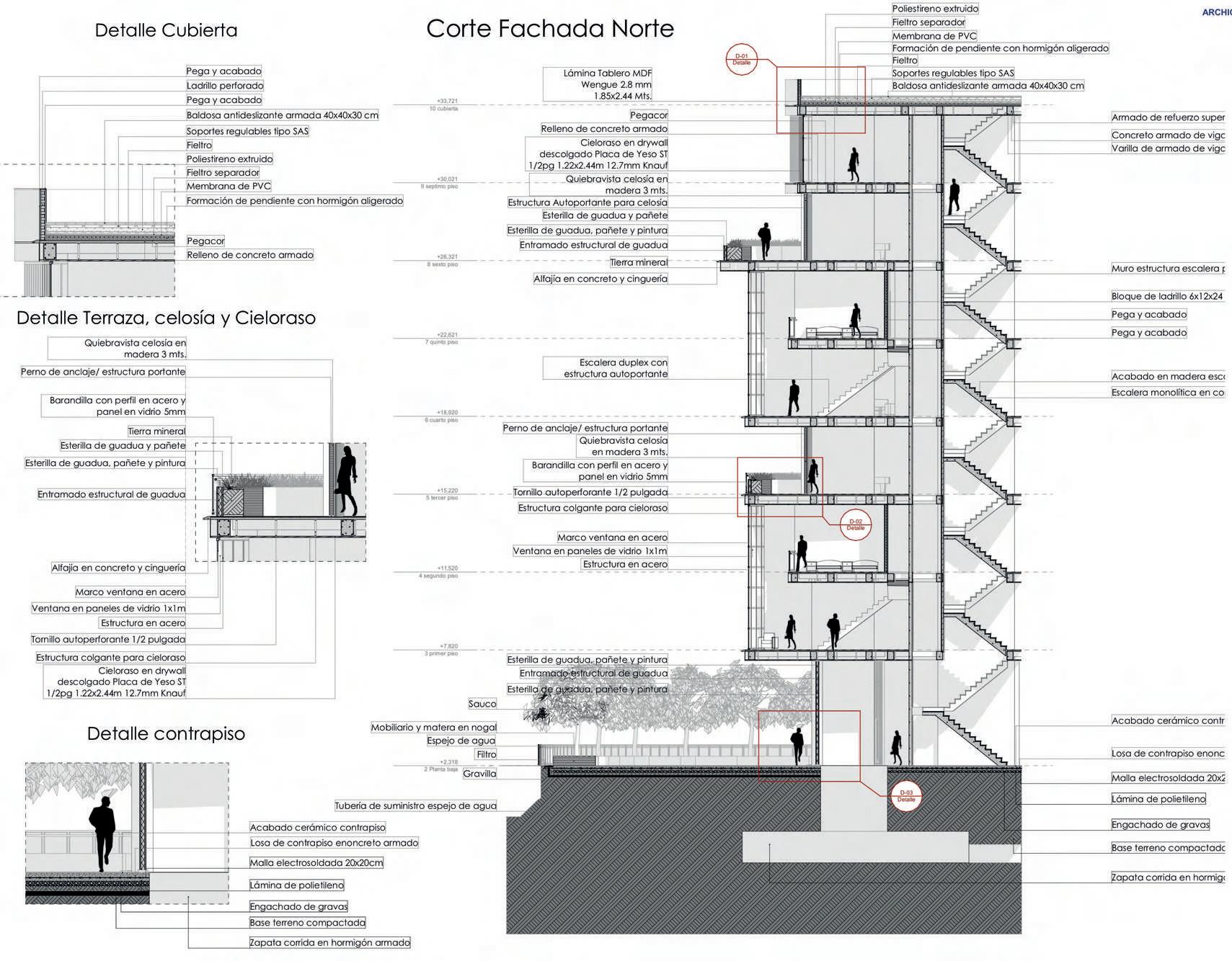 The last two semesters of the carrer i did my degree work. It was the compilation of 3 descriptive design reports, along with plans, models, cuts and other deliverables.