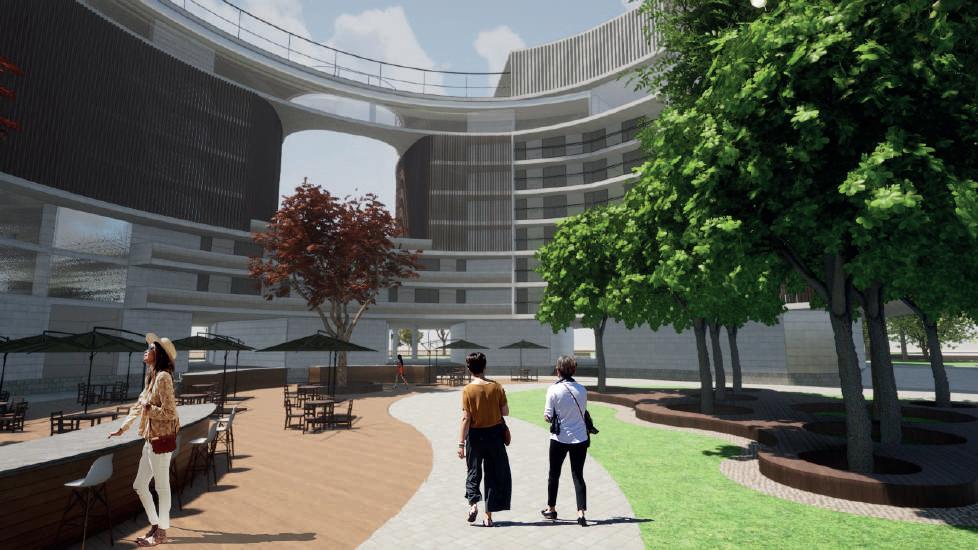 Due to its shape and its urban relationship with the environment, it appears to be a block typology, however, its true building typology is 3 attached towers that function independently from the first to the fifth level, on the ground floor they share the urban space, but without However, they also have equally independent entrances and separate fixed vertical connection points. On the sixth and seventh levels, the fixed points meet in the same private social space, with the design of 2 terraces and 2 communal rooms. The ground floor is double height to intensify the permeable character, there are 3 urban stairs that connect the different levels and within the private access area to the towers, there are small terraces with views of the main sports area and the trading center. In the northern part of the building there is an axis of elder trees that accompany the urban furniture proposed to enjoy the views of the river in the public space, this furniture also functions as a container for the arborization. Already inside the towers, there is a fixed elevator and staircase point to access the different levels, where different standard apartments are mixed to give movement to the facades. The typology of the apartments is a porch, opening the spaces to both southwestern and northeastern views, in the common areas and in the rooms. Furthermore, this concept is supported by the distribution of spaces and furniture. The furniture is directed seeking the entry of light towards the large windows that are proposed.