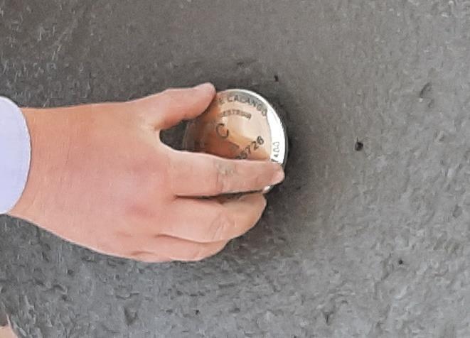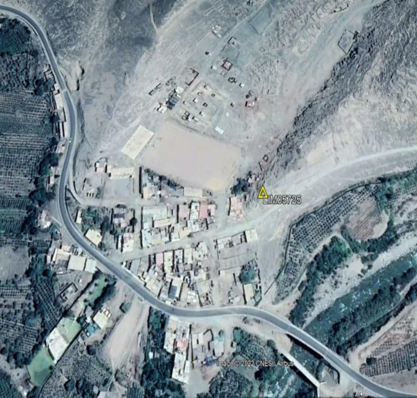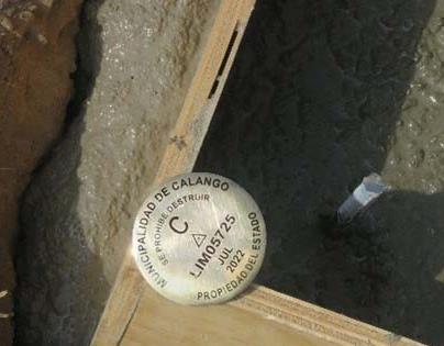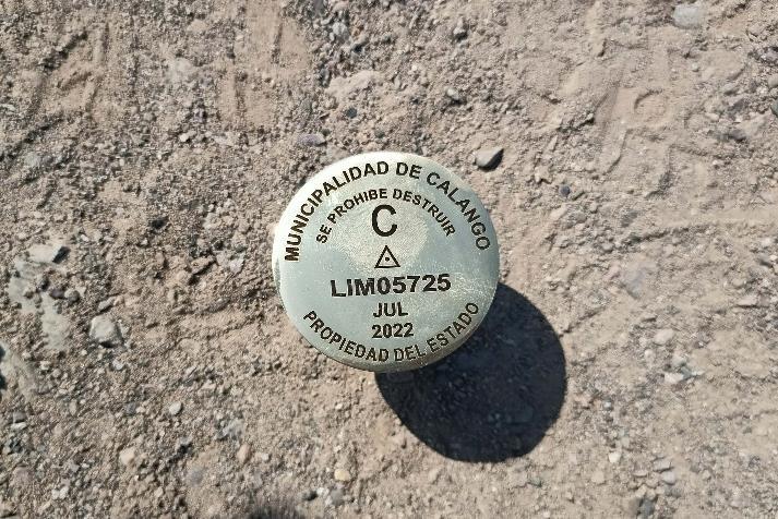 La monumentación del punto geodésico denominados “LIM05725”, se realizó con dimensiones de 40 x 40 x 60 cm, siendo la marca de estación una placa de bronce de 7 cm de diámetro lleva inscrito las iniciales de “MUNICIPALIDAD DE CALANGO.” El código, el orden, el mes y el año de observación.