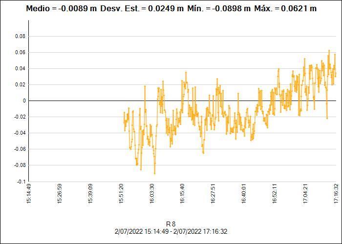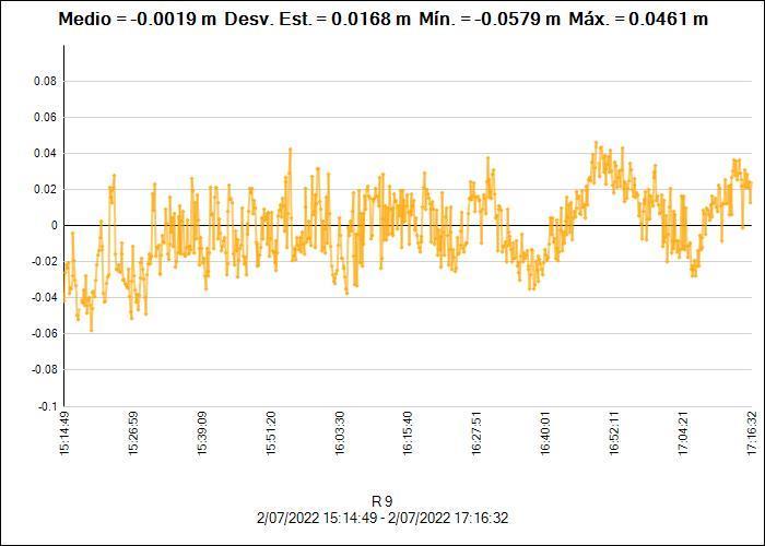 Para el post procesamiento de las Líneas Base, se revisó el grafico de la línea de tiempo con la finalidad de identificar lapsos de tiempo que no tenían continuidad y saltos de ciclo en el rastreo simultáneo.