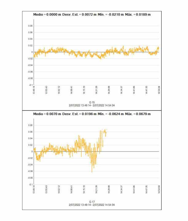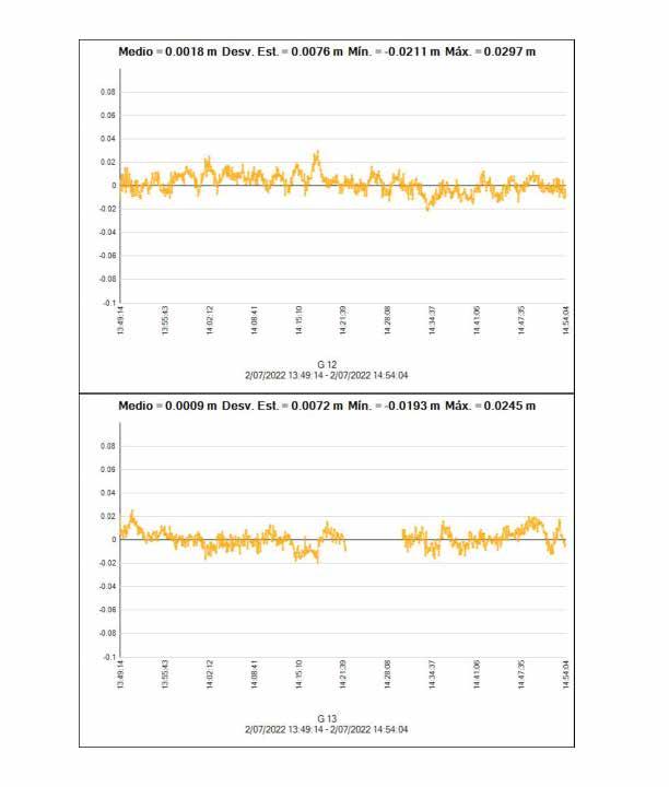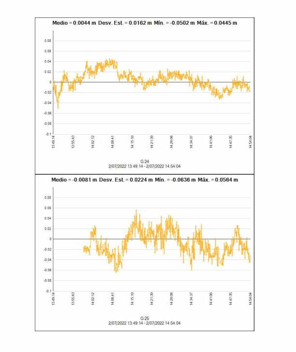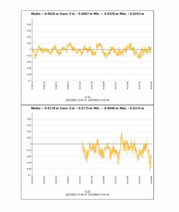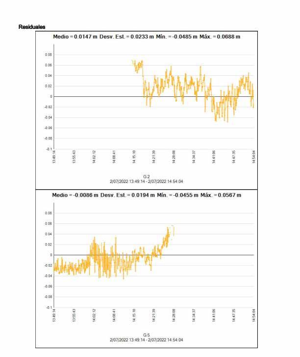 La información de campo es analizada y verificada, obteniéndose gráficas de residuales para cada satélite lo que permitirá la edición de las sesiones para eliminar datos de satélites con señales que presenten saltos de ciclo y ruido Pseudo-Aleatorio que afecten la precisión de los resultados.