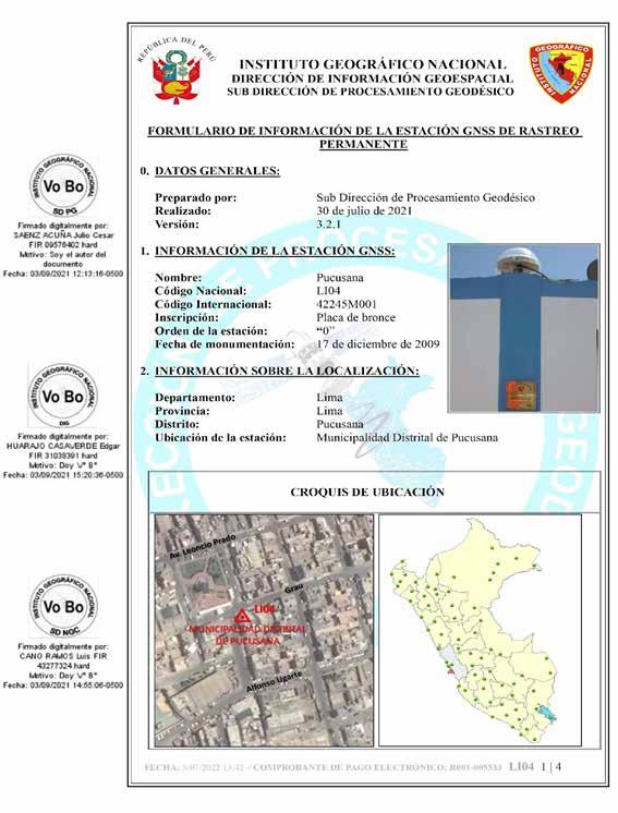 Del área otorgada para establecer los puntos geodésicos se determinó la ubicación de una línea Base de Control perteneciente a la estación de rastreo permanente del Instituto Geográfico del Perú, asignado con el código LI04 en la provincia de Lima, distrito de Pucusana.