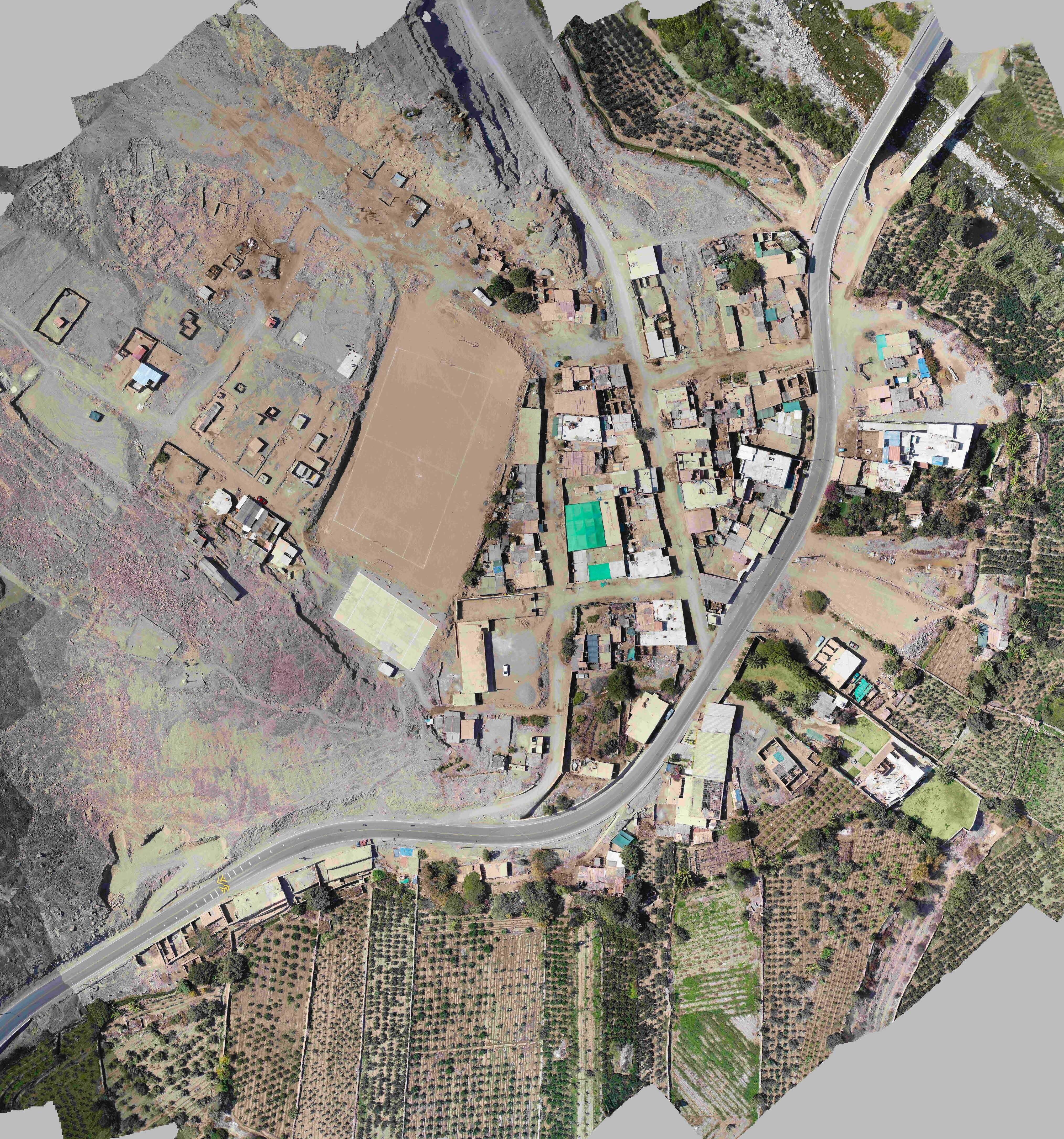 En este sentido, con la finalidad de contar con información que permita caracterizar el relieve de la superficie terrestre con un alto nivel de resolución que sirva de base para el cartografiado geológico, geomorfológico y geodinámico, de la zona de estudio; se ha llevado a cabo el “Levantamiento topográfico de la ciudad de Calango, mediante fotogrametría aérea con dron y mediciones con ayuda de equipos de levantamiento GNSS”