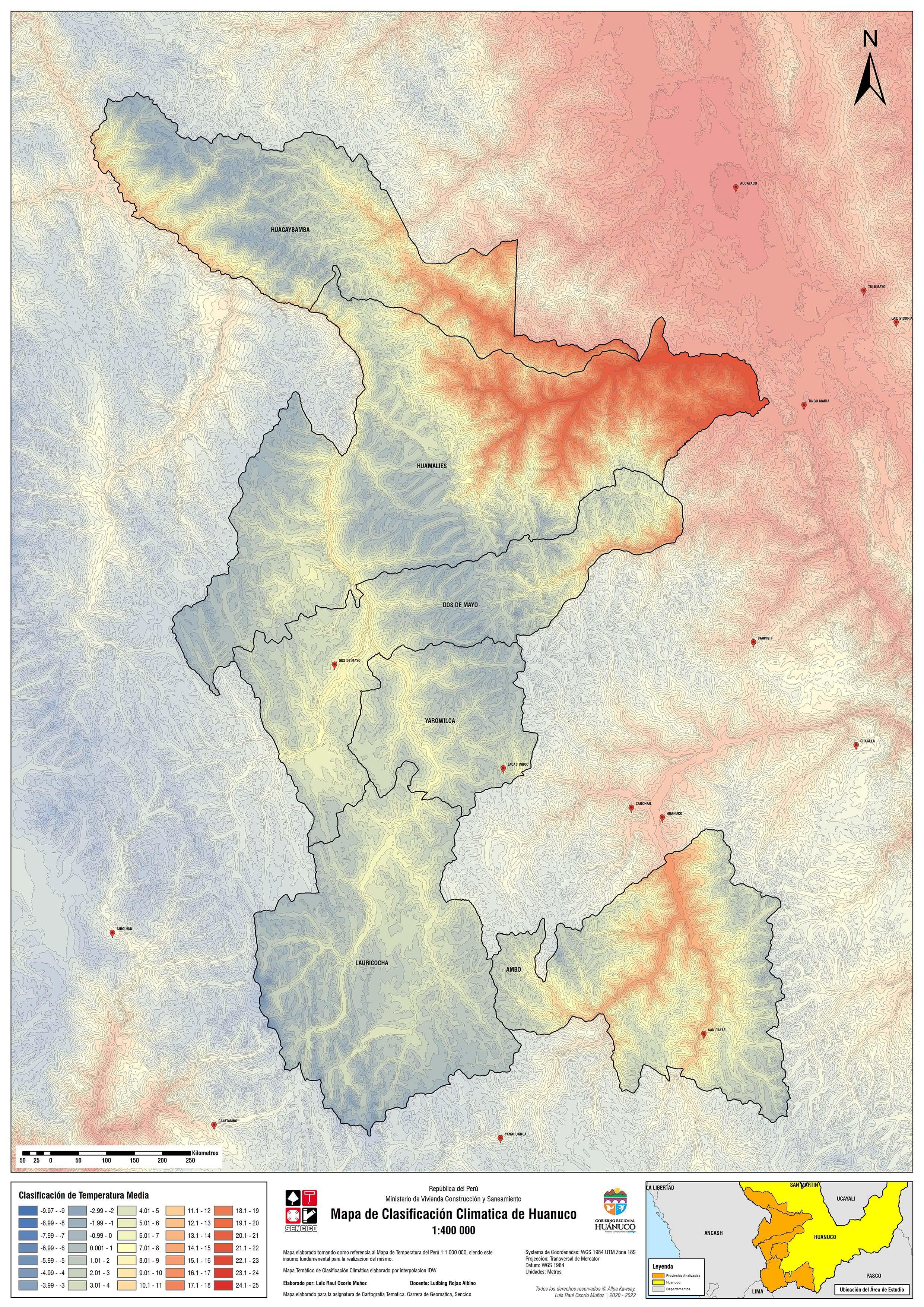 Mapa elaborado tomando como referencia al Mapa de Temperatura del Perú 1:100 000, siendo este insumo fundamental para la realización del mismo. Mapa Temático de Clasificación Climática elaborado por Interpolación IDW.
