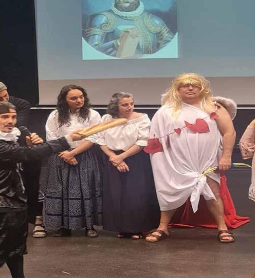 As duas Assistentes Operacionais afetas à Biblioteca da Escola Secundária, Sandra Teles e Marlene Ferreira, entraram no elenco do grupo de teatro, constituído também por professores do Agrupamento de Escolas de Lousada, intitulado “Art(e)Manha”, no âmbito na celebração dos “500 anos do nascimento de Luís de Camões”, e que levou a cabo a encenação da peça Lusíadas, drama de uma Nação , escrita pelo professor António José Pereira, de Português, no auditório da Escola Secundária.