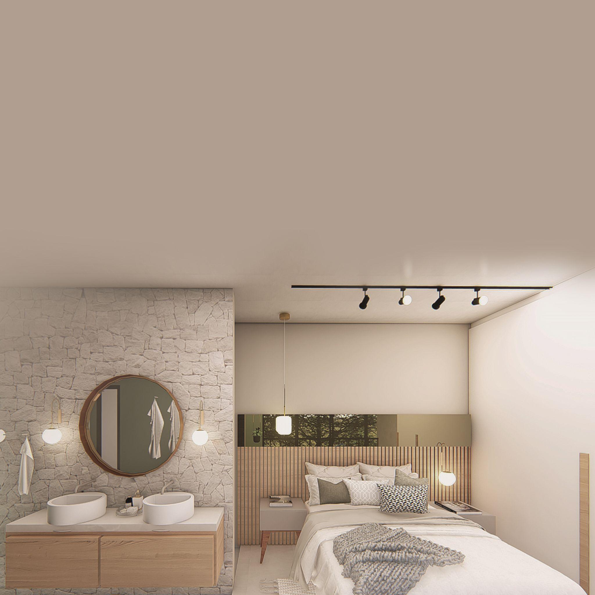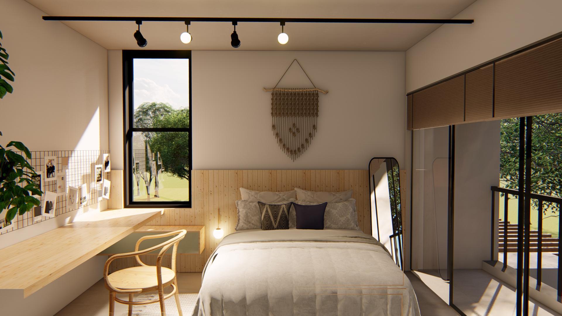 Imagem 36 e 37: A suíte da casa possui o objetivo de proporcionar um ambiente de estudo, descanso e aconchego.