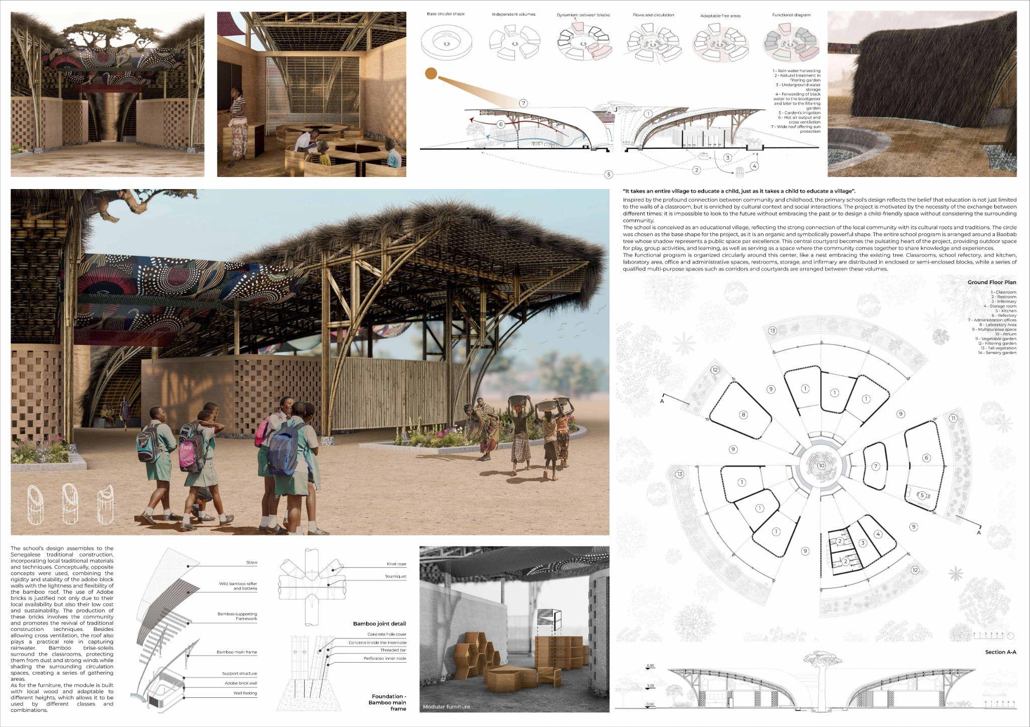 “É preciso uma aldeia inteira para educar uma criança, do mesmo modo que também é preciso uma criança para educar uma aldeia”. Inspirado pela profundaconexãoentreacomunidadeeainfância,oprojetodaescolaprimária proposto pela equipe, refletiu a crença de que a educação não se limita apenas às paredes de uma sala de aula, mas é enriquecida pelo contexto cultural e pelasinteraçõessociais.