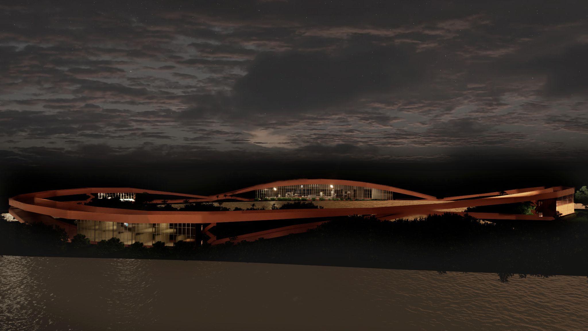 o projeto propõe a criação de memoriaisqueconstroemumitinerário de montante a jusante, tendo a baliza de Governador Valadares como ponto centralnessecaminho.nela,destaca-se um anel metálico de modelagem paramétrica que configura um marco de impacto nacional que é simultaneamente cobertura, passarela, local de permanência e mirante. em diálogo com a ODS 9, o anel ainda abriga 4 anexos (fábrica de reciclagem, midiateca, laboratório e café), que contribuem para o desenvolvimento sustentável ao estimularem a reciclagem do aço, fortalecerem a pesquisa científica e integrarem a populaçãolocalnessasatividades