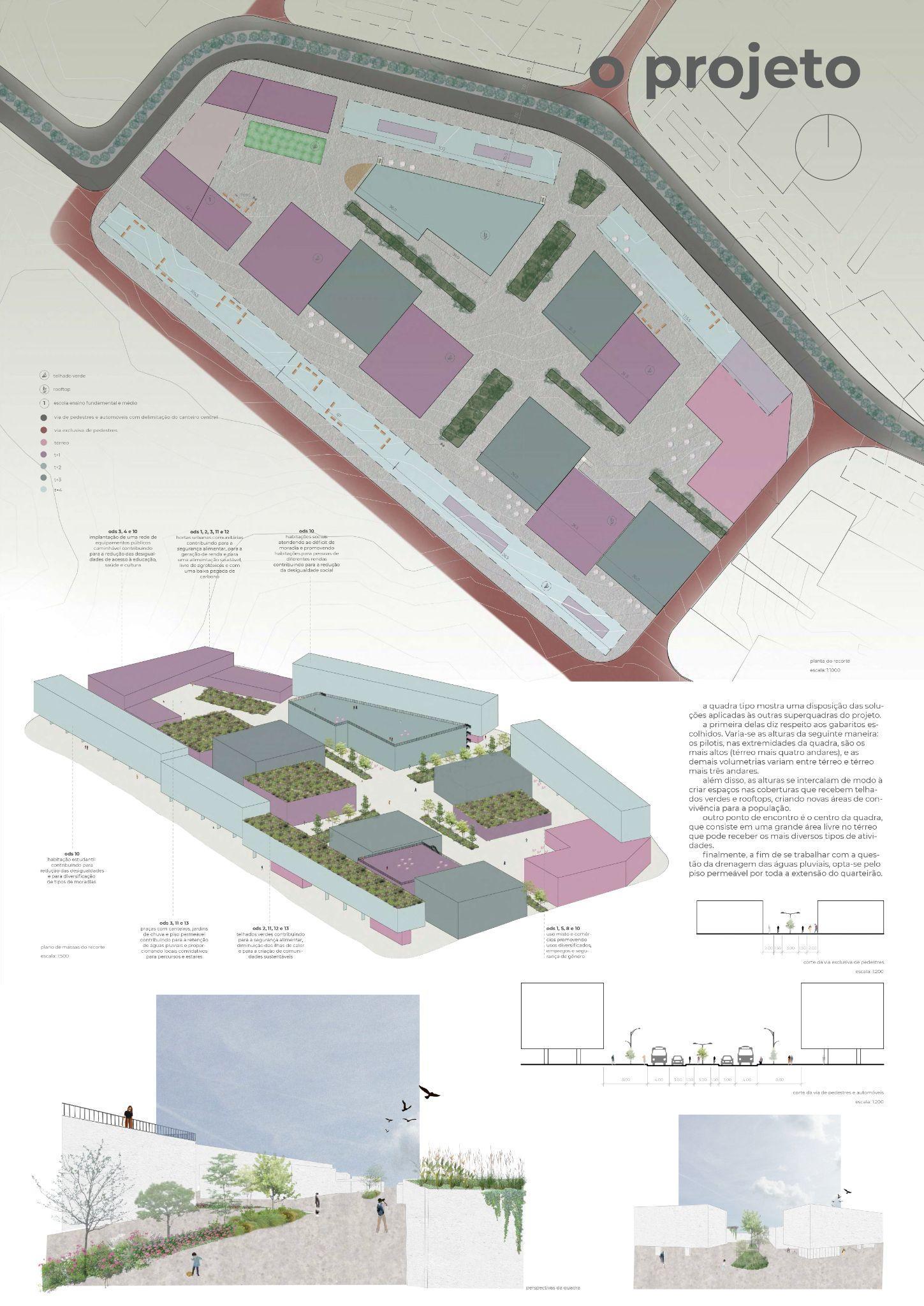 oprojetopropostosurgeapartirdessaconcepçãodeumacidadesaudáveletemcomo partidoumarededeequipamentospúblicosquepermeiatodaaáreaeéinterligadaporvias decirculaçãoquedesenhamoformatodasquadras.asvolumetriassurgemnasquadras comooscheioseosvaziosaparecemcriandocaminhosdecirculaçãointernaquereforçama hierarquiadeimportânciadosequipamentospúblicosparaomodelodecidadeadotado. autorasdoprojeto:LuizaMasiero,MarianaGonzalez,VitoriaNogueira,AnaMariaPallota.
