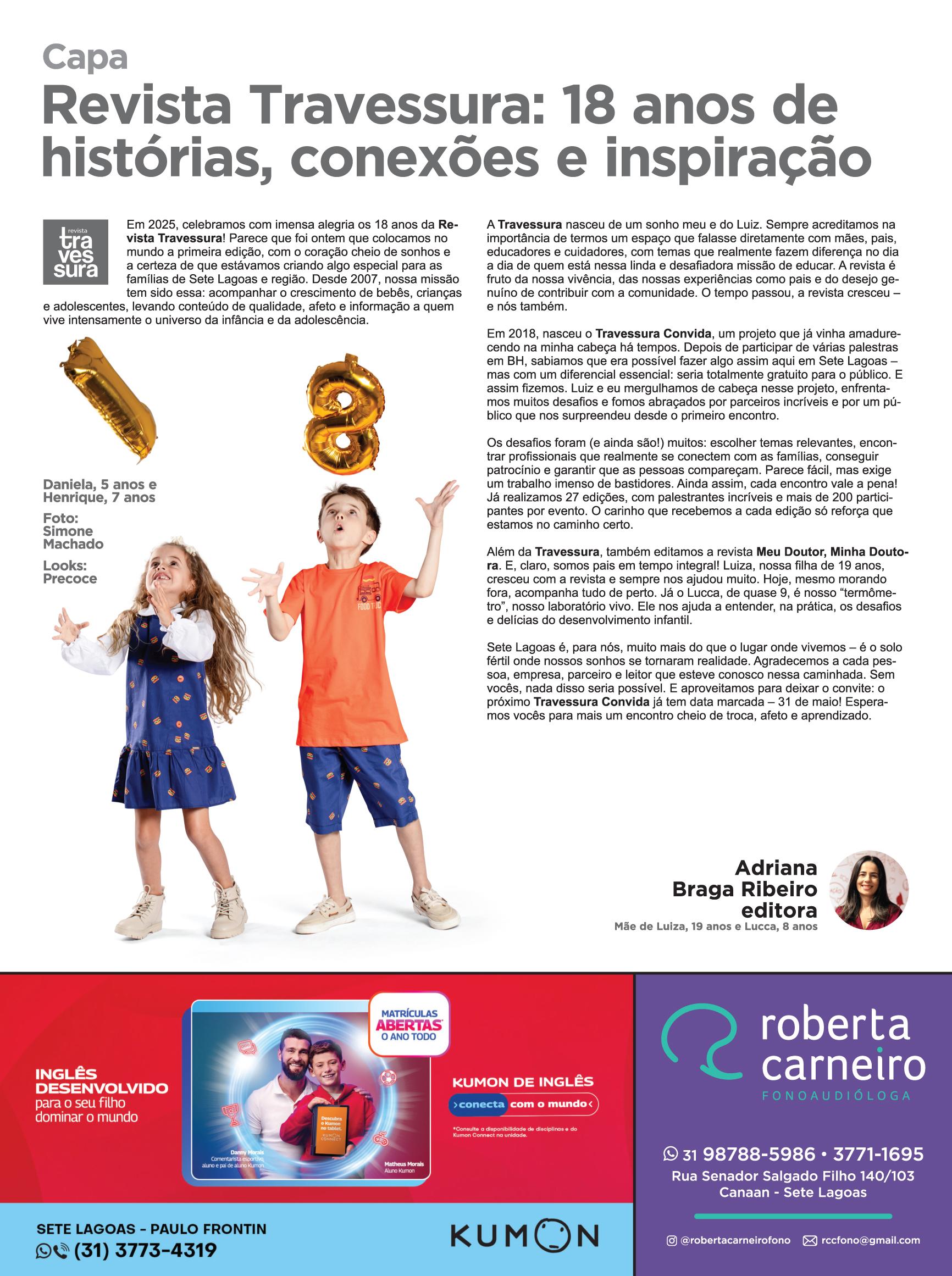 Revista Travessura, Travessura, 2025, Abril, Travessura Convida, Gravidez, Maternidade, Mães, Pais, Avós, Criança, Father, Dad, Mother, Mom, Grandfather, Grandmother, Children, Kids, Pediatria, Neuropediatra, Odontologia, Ortodontia, Psicologia, Psicóloga, Neuropsicóloga, Família, Leitura, Saúde, Amamentação, Recém-nascido, Bebê, Baby, Desenvolvimento, Comportamento, Escola, Educação, Diversão, Moda, Fashion, Fotografia, Sete Lagoas, Belo Horizonte, BH, Minas, Minas Gerais, Brasil, Brazil