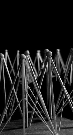 to work towards a new narrative of liberation, independence, and empowerment. Within the fabricated environment, the sheep remain grounded, rooted to the earth, while the women seek refuge beneath the stretched fabric.