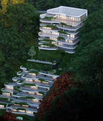 Human well-being are considered and approaches are taken to maximize human connection to nature. The design are incorporated with natural plants as well as the site view and vista are appreciated. Balcony and terrace are designed to connect people to the site natural views and vista.