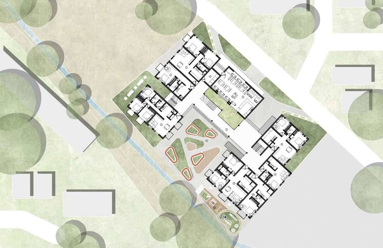 "BETWEEN SPACES" is an affordable and equitable housing project designed for all age group people coming from low-income and different cultural background. The project is aligned to one of the noisest Troy Highway, and is designed as a mixed used building. The housing serves for various community group of people from a working young profession to a family of four. The main idea of this project is to ensure there is as much as interaction and communication among the residents.