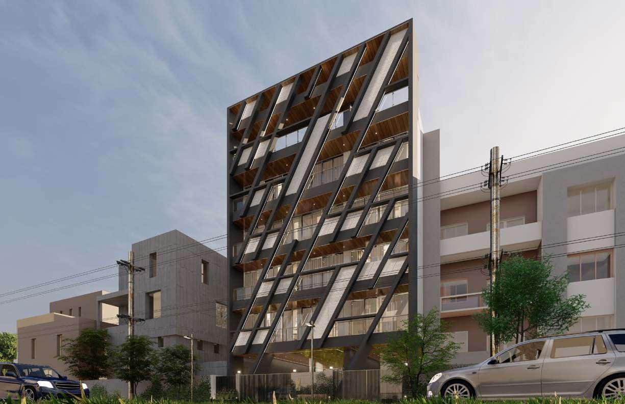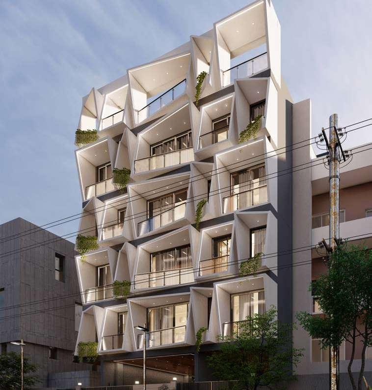 The site, constrained by properties on the east and west, posed challenges in ensuring natural light and ventilation for the apartment units. To address this, the design was meticulously planned so that each unit received ample natural light and ventilation.