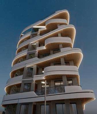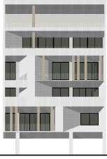 Facade experimentation was limited to the north and south sides, with various designs tested to add dynamism and distinction to the building. Ultimately, a geometric balcony structure was chosen for its visually striking yet straightforward repetitive pattern.