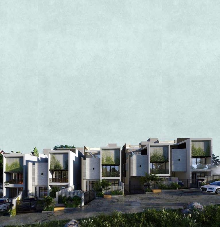 The planning of each plot was meticulously designed to meet client requirements and adhere to Vastu principles for residences. The concept emphasized simplicity and cleanliness, avoiding excessive volume projections in favor of small, slender ones for an elegant, lighter look.