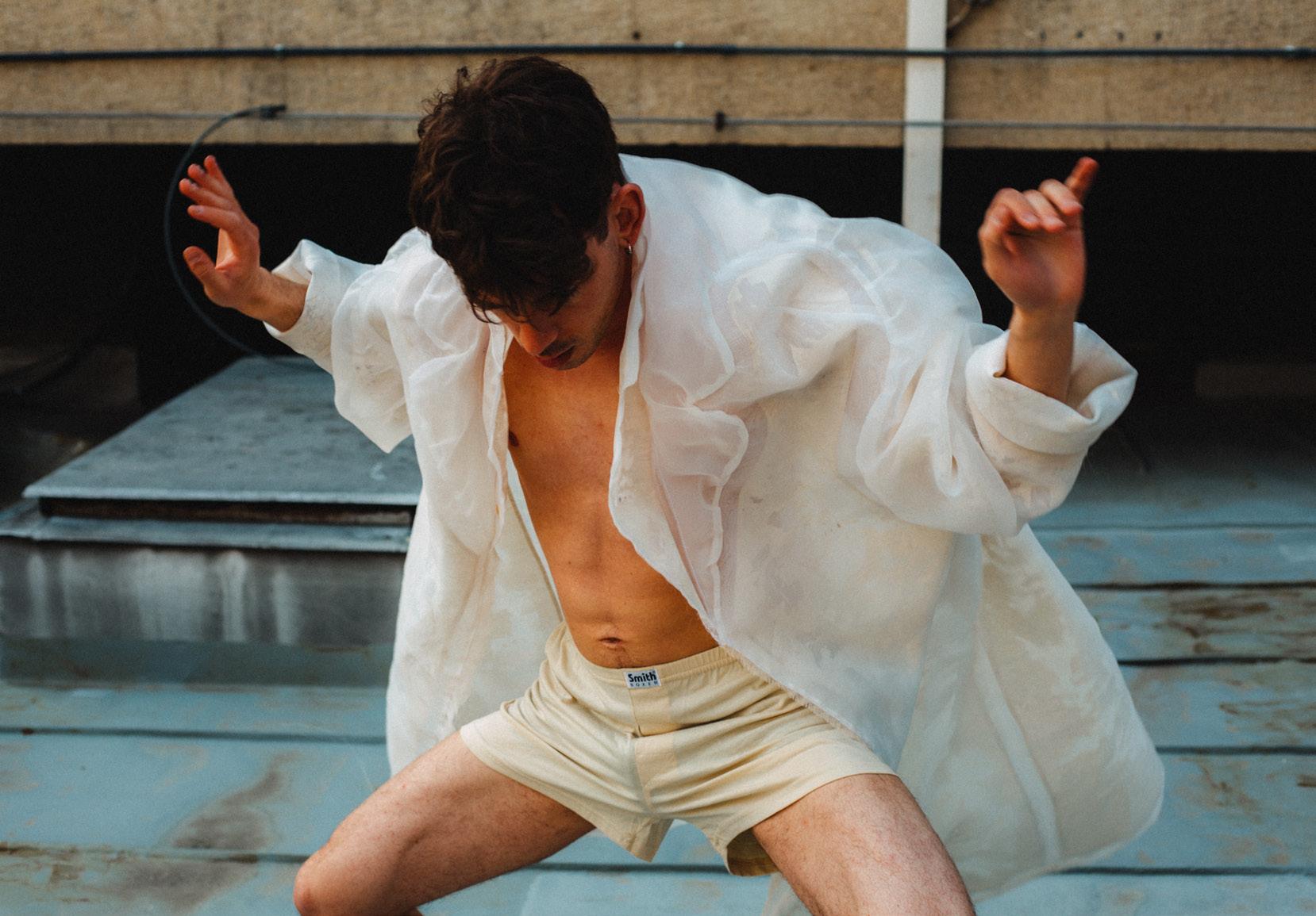 THE LUXURIOUS SILK SHIRT PAIRED WITH TROUSERS MADE OF PRINTING MESH AND A HANDSTITCHED/PLEATED TOP RESULTED IN A VIBRANT, DYNAMIC YET HARMONIOUS COMPOSITION.