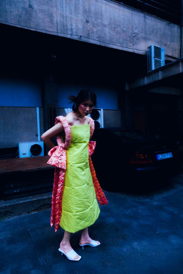 THE LOOKS, INSPIRED BY TYPICAL CHILDRENS’ CLOTHING AND TRADITIONAL JAPANESE PIECES ARE EMBELLISHED WITH OVERSIZED BOWS AND COLOURFUL PATTERNS. THE PATTERN DISPLAYS, FLOWERS, STARS AND DRAGONS IN A JUVENILE FASHION. THE OVERSIZED SLEEVES, “ILL-FITTING” SILHOUETTES GIVES A CHEERFUL YET UNCANNY IMPRESSION. BEHIND ALL THE FUSS THERE LIES SOMETHING SINISTER.