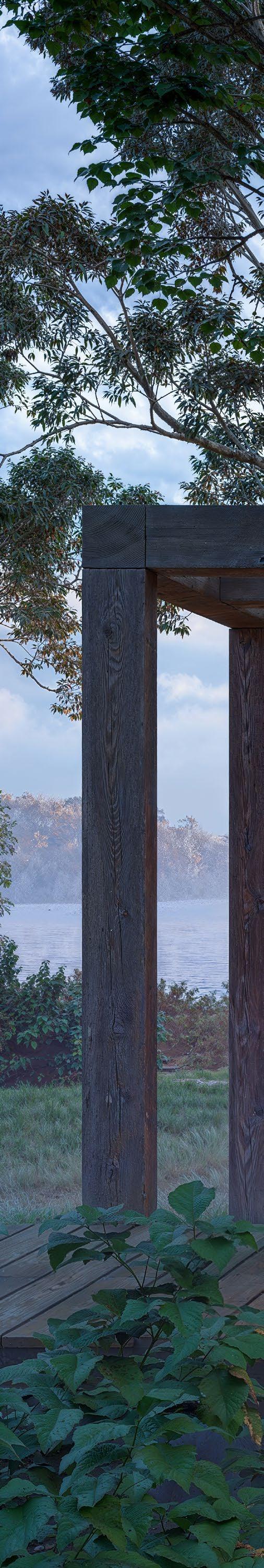 Dieses Familienhaus am See besteht aus zwei Teilen: einem Hauptgebäude und einem Gästehaus, in dem Sie Freizeit- und Entspannungseinrichtungen, einen Wellnessbereich und einen Fitnessraum finden. Bei der Gestaltung des Gebäudes wurde die traditionelle Fassade der Gegend berücksichtigt, jedoch mit modernen Lösungen und Details.